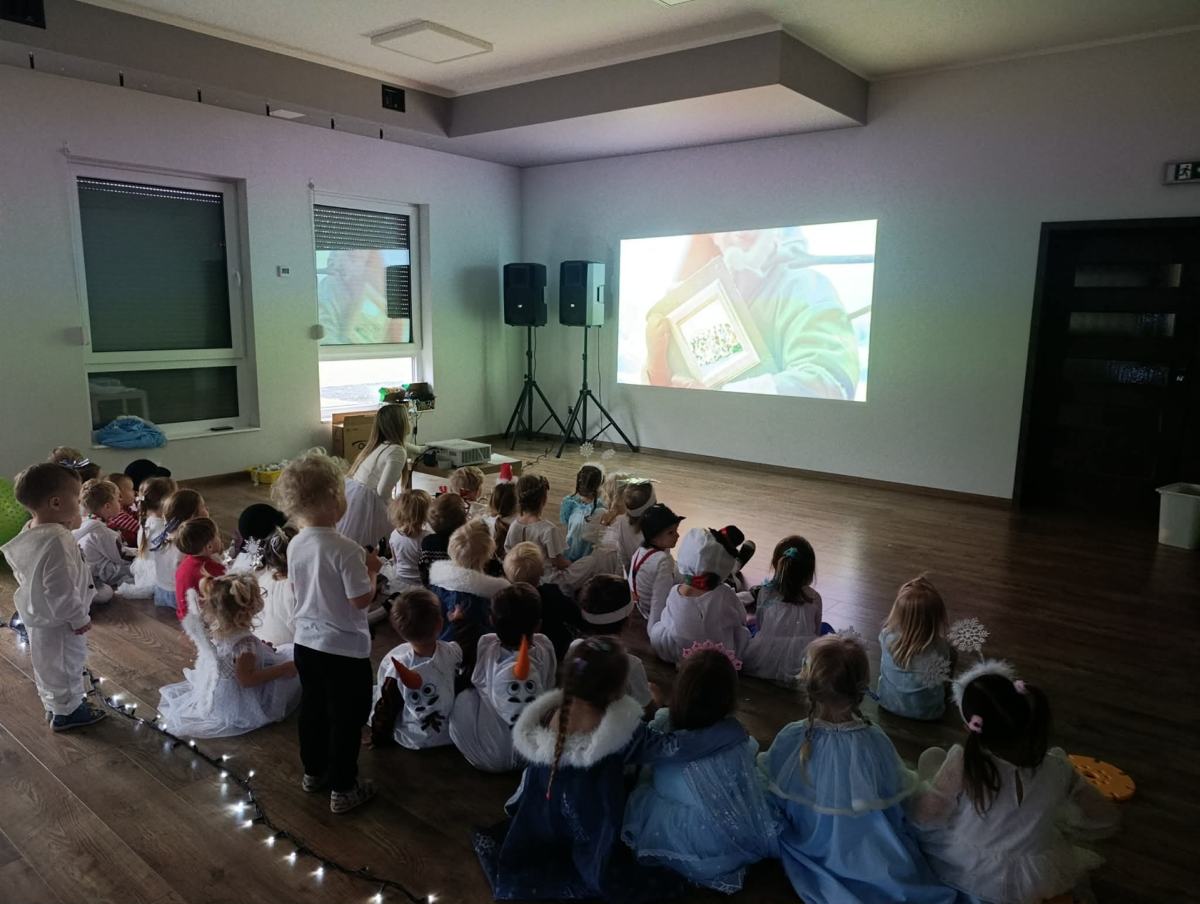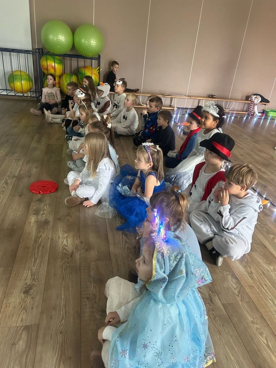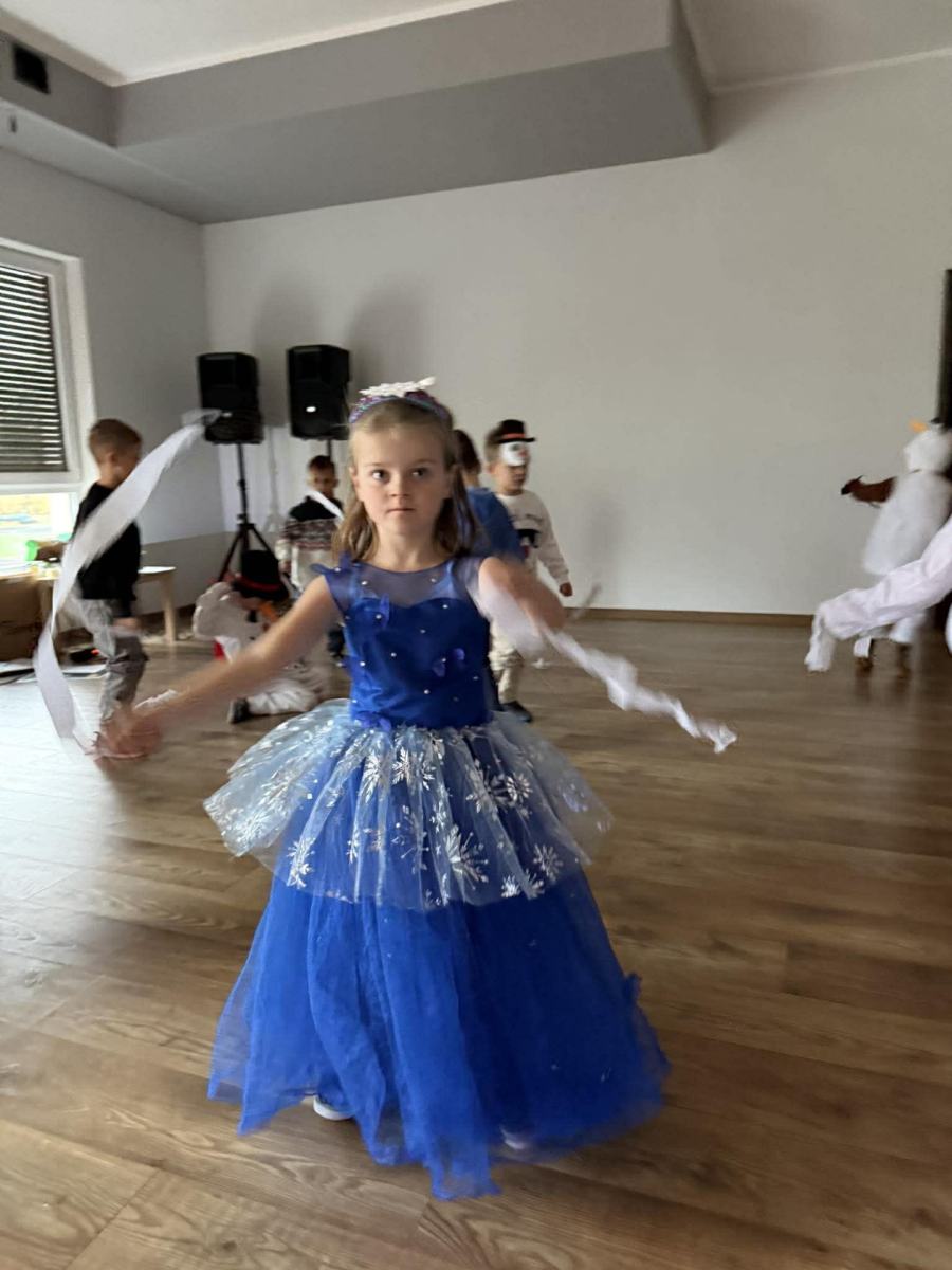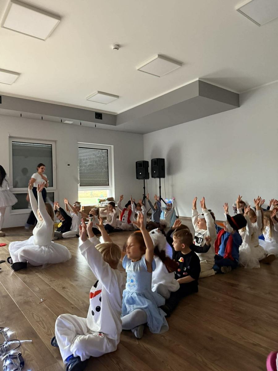 Bal mikołajkowy przeniósł dzieci do magicznej, zimowej krainy pełnej śnieżynek i wesołych bałwanków. Sala wypełniła się radością, śmiechem i świątecznym nastrojem. Dzieci z entuzjazmem brały udział w zimowych zabawach – była bitwa na śnieżki, toczenie śnieżnych kul oraz wspólne tańce i animacje.