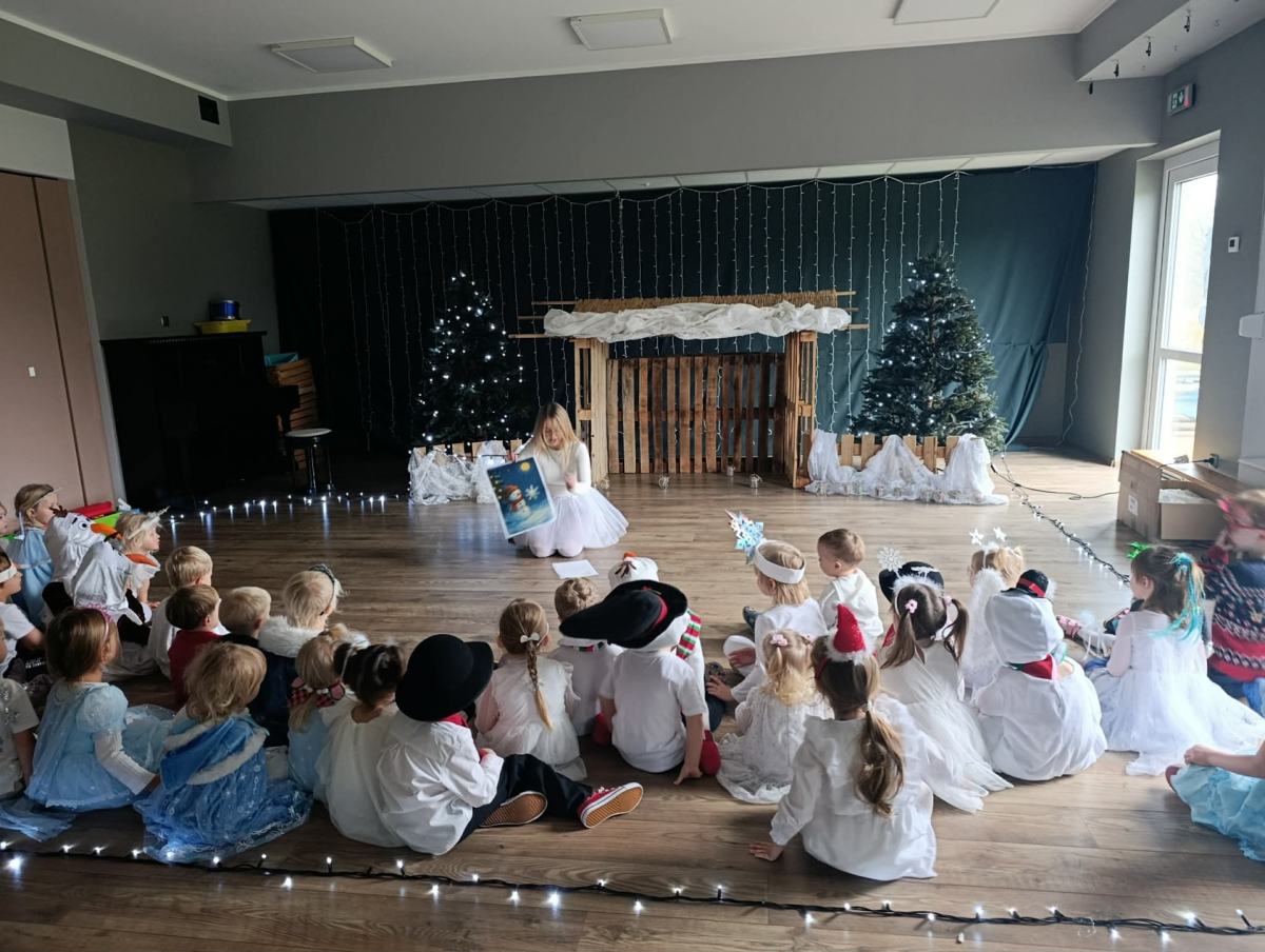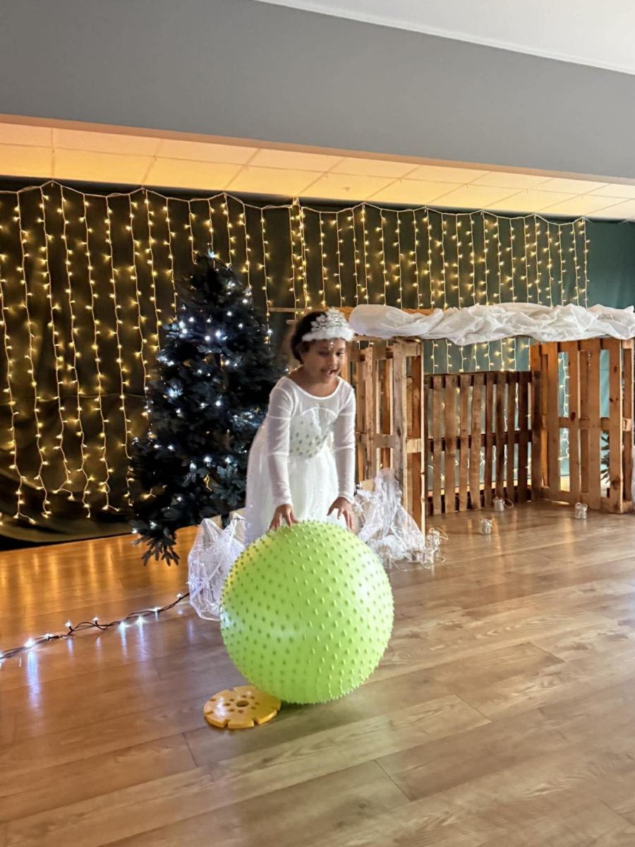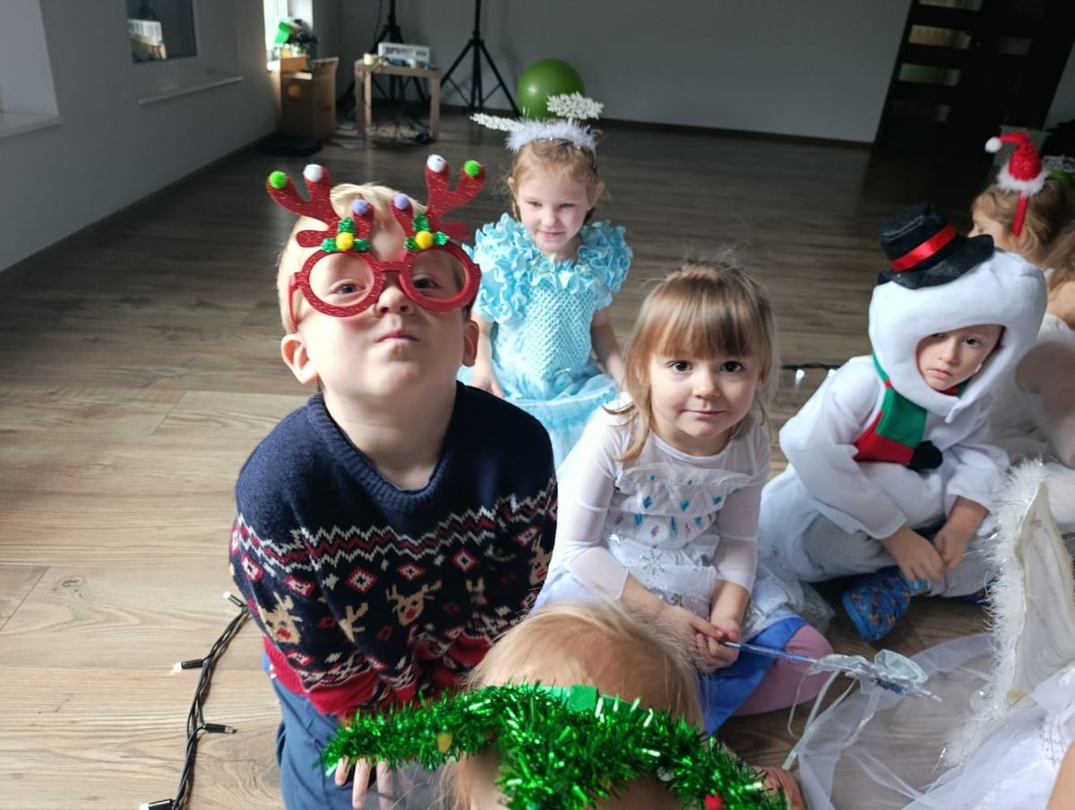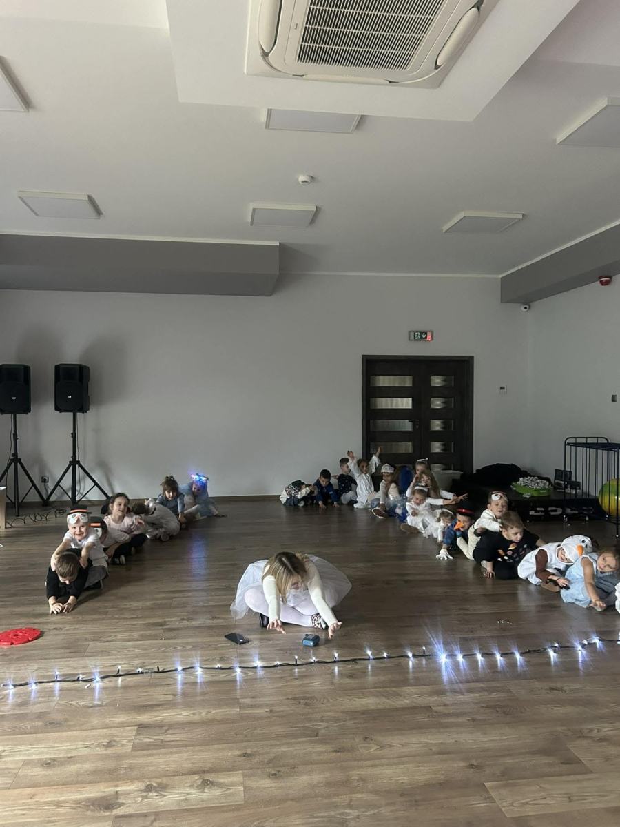 Bal mikołajkowy przeniósł dzieci do magicznej, zimowej krainy pełnej śnieżynek i wesołych bałwanków. Sala wypełniła się radością, śmiechem i świątecznym nastrojem. Dzieci z entuzjazmem brały udział w zimowych zabawach – była bitwa na śnieżki, toczenie śnieżnych kul oraz wspólne tańce i animacje.