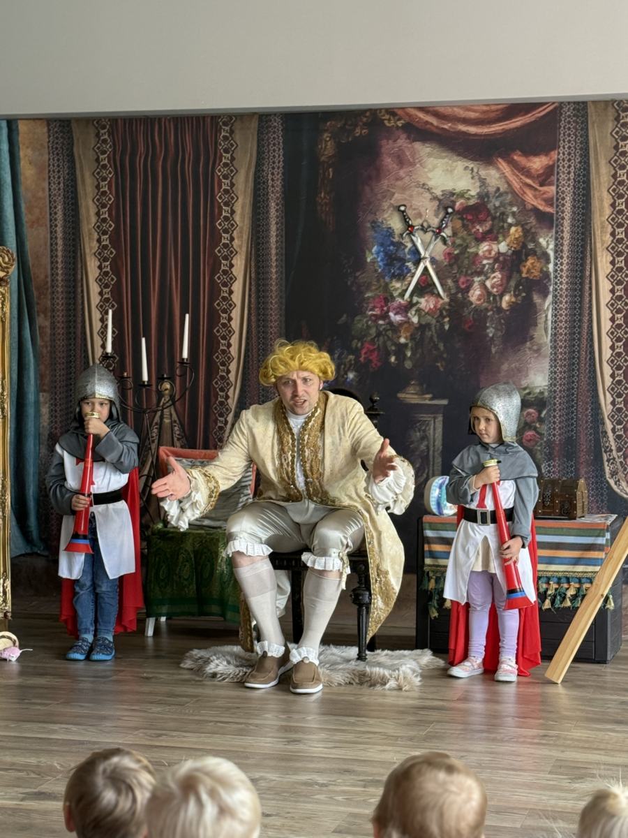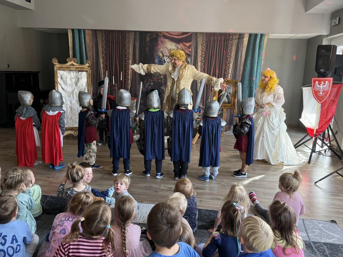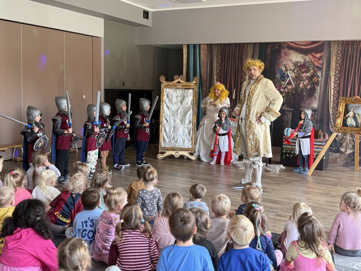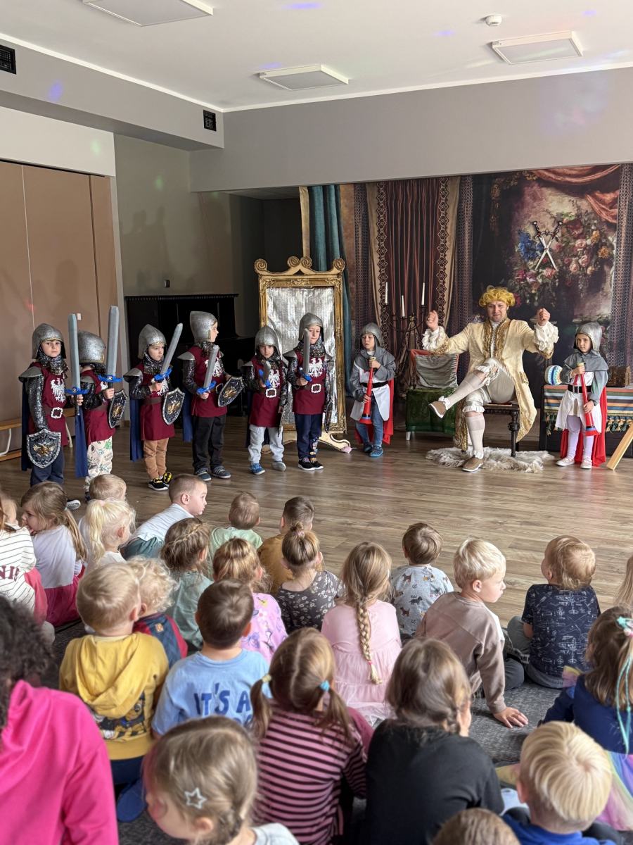 W dniu dzisiejszym w naszym przedszkolu odbyło się wyjątkowe przedstawienie pt. „Mały Rycerz”, zorganizowane przez Agencję Artystyczną Krzysztofa Gajewskiego. W role aktorów wcielili się nasi przedszkolacy z najstarszych grup, którzy z ogromnym zaangażowaniem i radością zaprezentowali swoje umiejętności sceniczne.