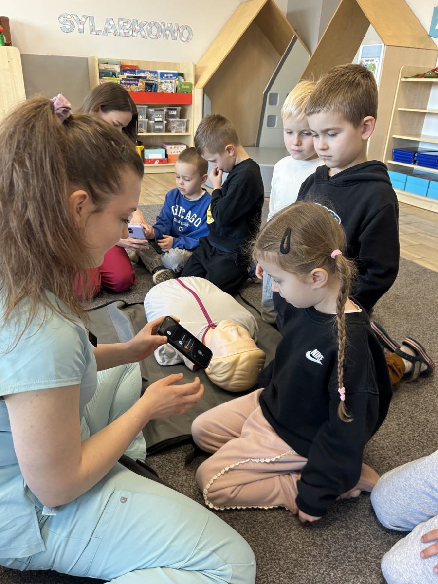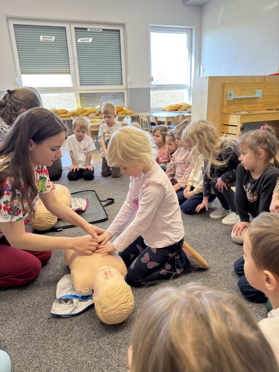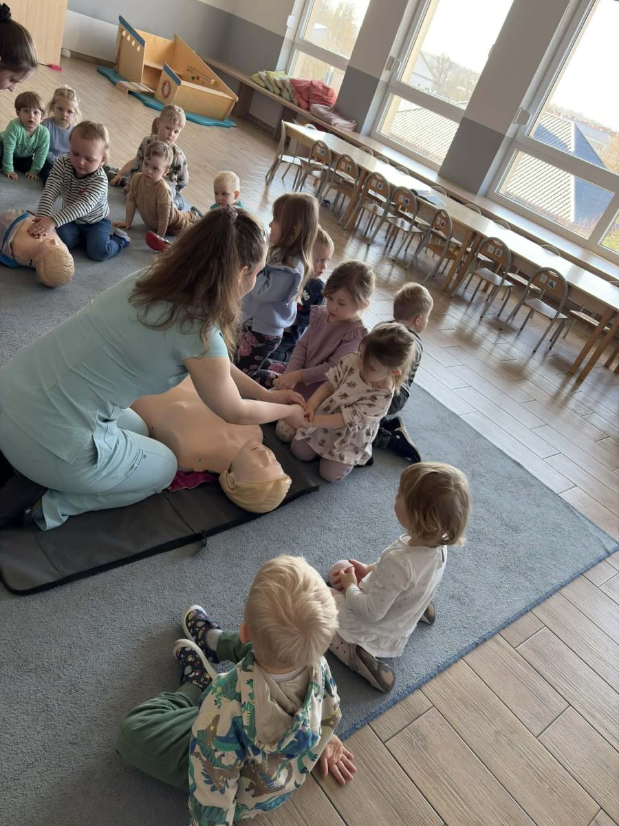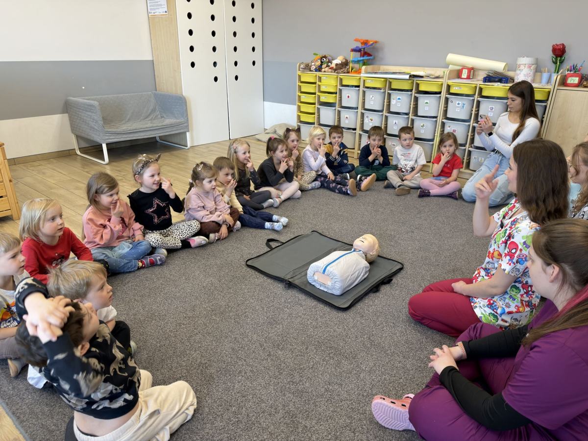 Przedszkolaki dowiedziały się, jak zachować się w sytuacji zagrożenia, co zrobić w przypadku wypadku oraz jak prawidłowo wezwać pomoc Nie zabrakło też praktycznych pokazów i wspólnej nauki, dzięki którym dzieci mogły poczuć się jak mali bohaterowie!