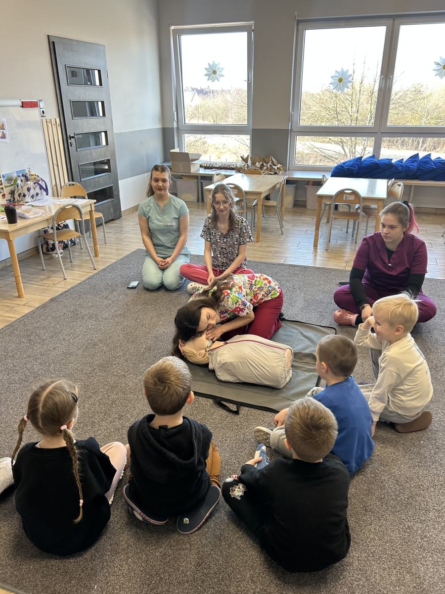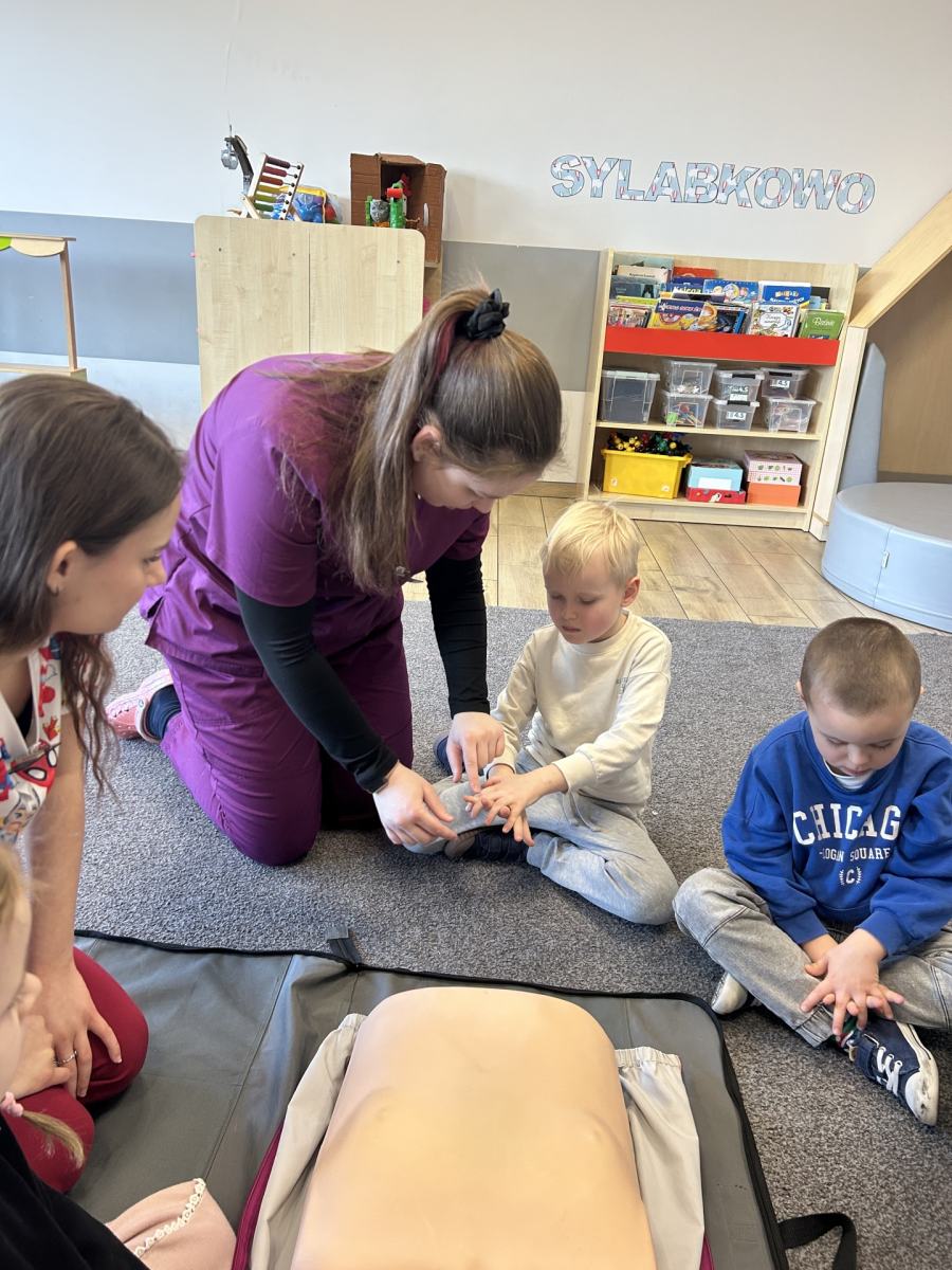 Odwiedziły nas studentki pielęgniarstwa, które w bardzo ciekawy i przystępny sposób wprowadziły dzieci w świat pierwszej pomocy.